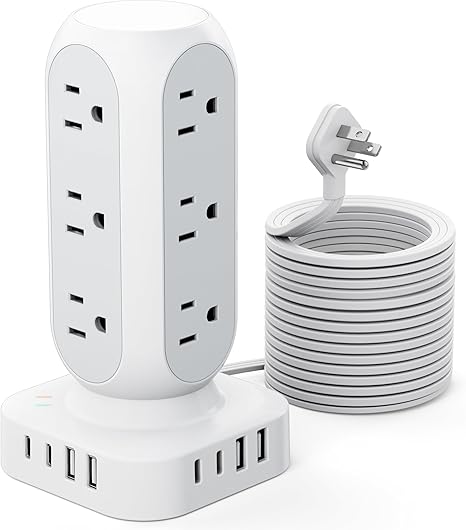 • 【20 IN 1 Power Strip Tower with USB】- This vertical power strip with USB ports features 12 AC outlets and 8 smart-charging USB ports(4 USB-C). It can charge 20 devices simultaneously without blocking, keep your desktop organized, widely use in home/office/dorm room. (Note: Please do not exceed the rated power 1875W ).
